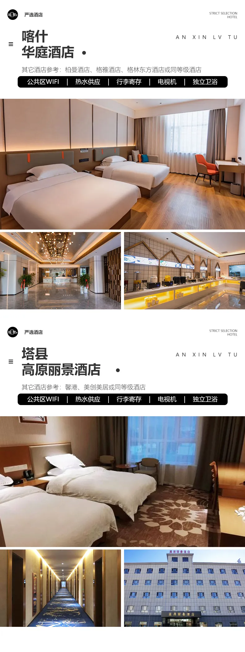 塔县:馨港、高原丽景、美创美居或同级酒店