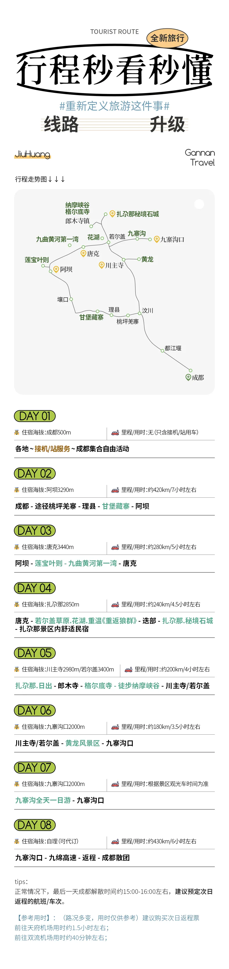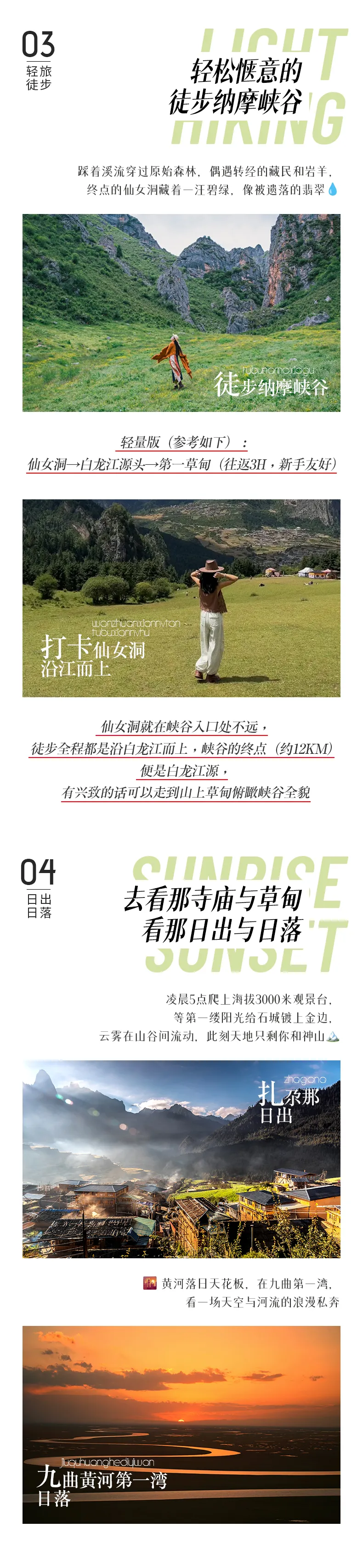 包含莲宝叶则、九曲黄河第一湾、若尔盖花湖、扎尕那、郎木寺.格尔底寺、徒步纳摩峡谷、黄龙、九寨沟