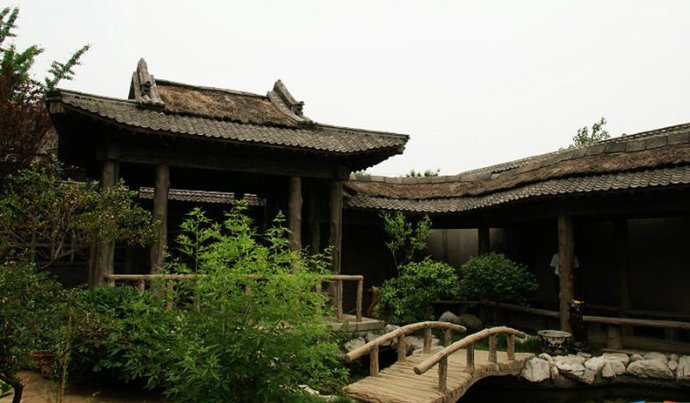 现在来到一座青砖灰瓦的大宅院前,这也是具有北方居民特色的明清式格调的四合院建筑。首先映入眼帘的这门楣上的匾额,是由我国著名文学家郭沫若提写的“蒲松龄故居”。
