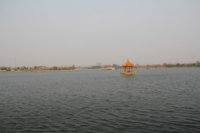 开封像聊城一样依水而眠,见过东昌湖的秀,今天领教了开封水的美,不过我觉得开封的水更有诗意:“光摇潋滟沿珠蚌,影落沧溟照水犀,火焰逼人高万丈,倒提铁笔向空题”