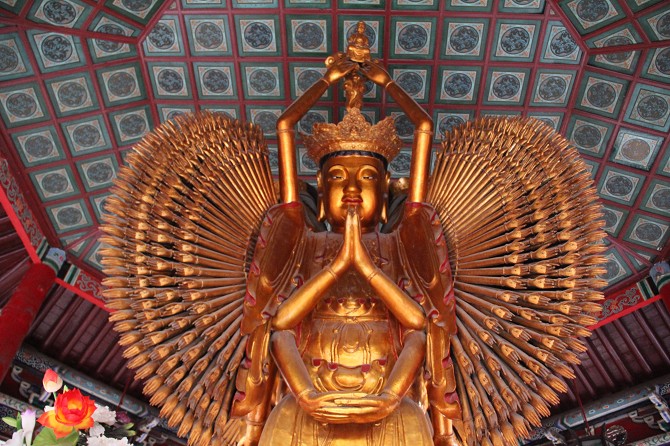 接着我们来到了大相国寺,大相国寺是中国著名的佛教寺院,唐睿宗因纪念其有相王登上皇位,赐名大相国寺。北宋时期,相国寺深得皇家尊崇,多次扩建,占地达500余亩,辖64个禅、律院,养僧千余人,是京城最大的寺院和全国佛教活动中心。《水浒传》描写的鲁智深倒拔垂杨柳的故事,就发生在其所辖之地。后因战乱水患而损毁。清康熙十年(1671年)重修。目前保存有天王殿、大雄宝殿、八角琉璃殿、藏经楼、千手千眼佛等殿宇古迹。
