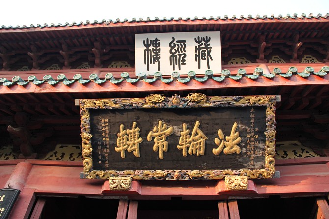 藏经楼位于整个寺院的后半部,这是一座两层楼阁的建筑,雕梁画栋,富丽堂皇。