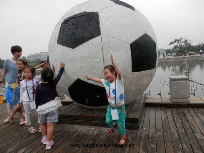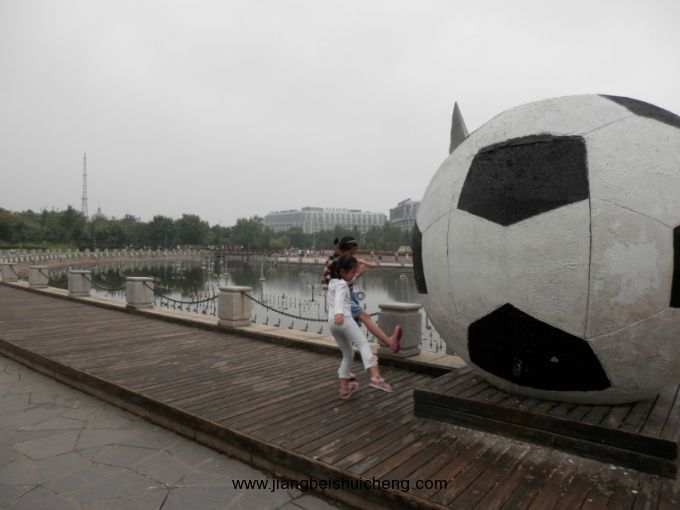 好大的足球啊,都抱不起来。