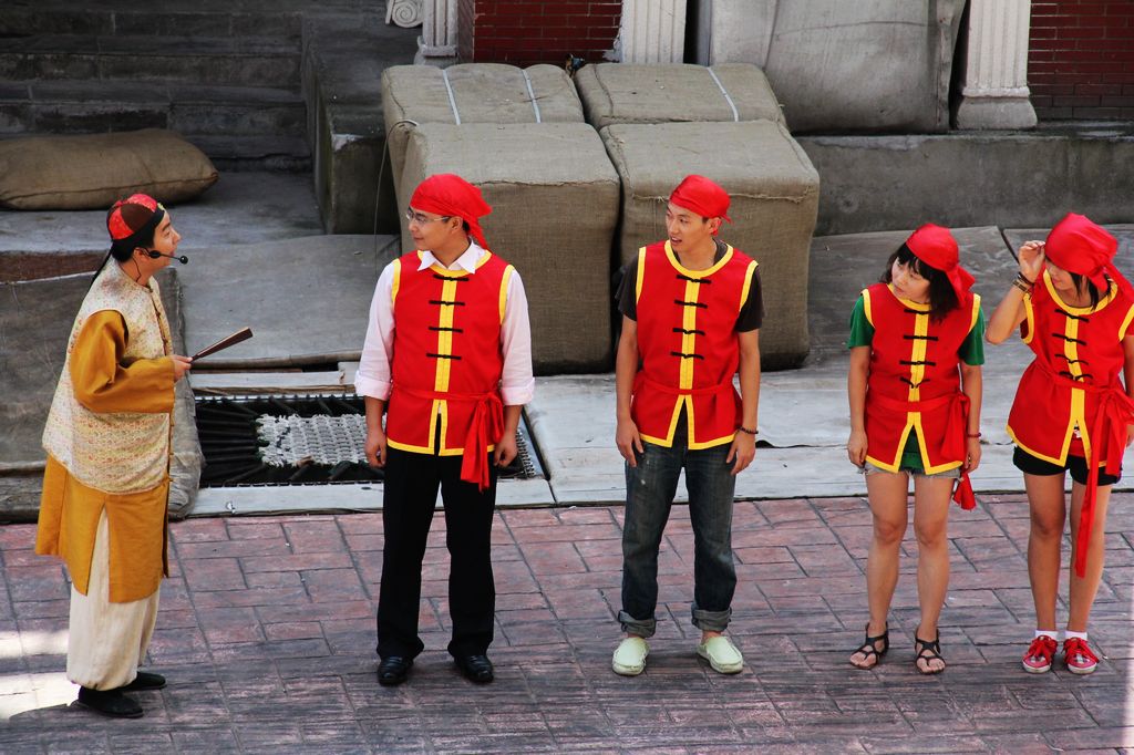 看着演员们穿着古装表演,心里痒痒的,我也想表演,哈哈