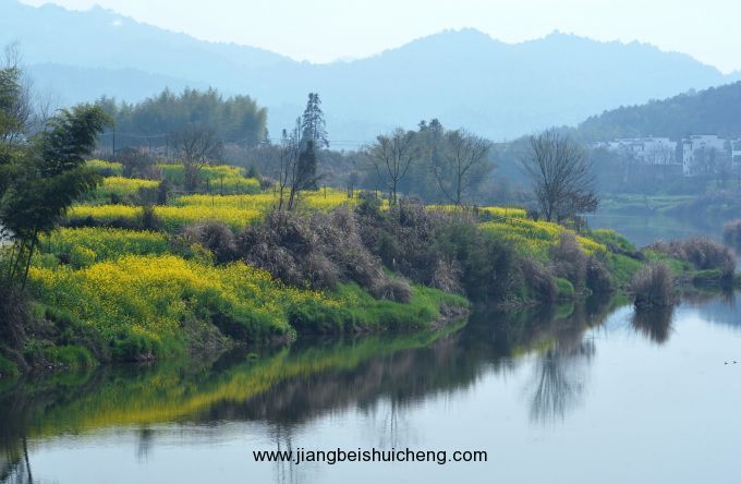 月亮湾坐落于李坑往县城途中,离县城五里左右,该村风景因江中有一江心洲如一轮眉月而得名,是摄影家钟情神往的去处,若遇着烟雨天气,月亮湾水雾蒸腾,有轻舟拂过水面,有如桃源仙境之感。摄影创作时间50分钟。长滩村在清华去县城路边,因地势缘故,俯瞰长滩景致绝佳,白墙灰瓦衬着大片大片的油菜花,俨然一幅重彩油画,该地为许多摄影爱好者所独钟。