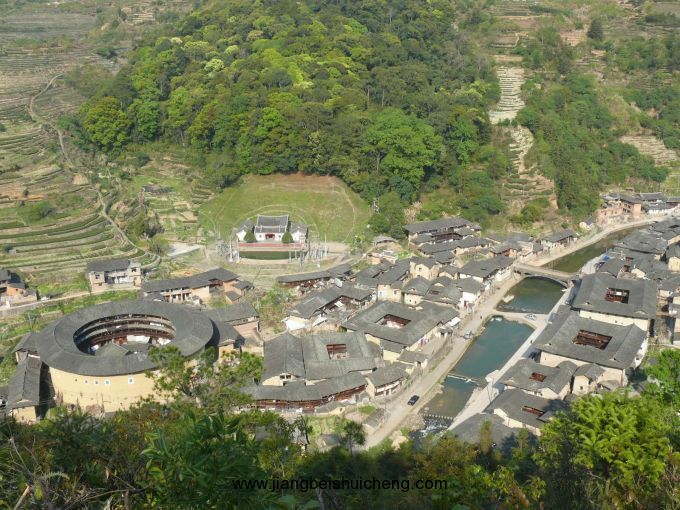 于是,张姓族人沿着沟谷两旁,建造了一座座集居住、防御等功能于一体的围合型土楼建筑。最早的土楼福兴楼建于明代崇祯四年(1631年),为七世东崖公所建,以后又陆续建造42座土楼,有方形、圆形、围裙形、曲尺形等,这些土楼沿山溪呈长形摆布,高大雄浑,气势恢宏。版权所有,山东聊城聊之旅国际旅行社有限公司,转载必究!清末后,由于地理环境所限,张姓族人在沿溪两岸的空地上,又建起了一座座单院式土木、砖木结构的吊角楼,形成大楼带小楼、高低错落布局的奇妙景观。楼前屋后铺就的卵石小径,被几百年先人们的足迹磨得圆润,细雨轻烟,闪出柔和的光泽。