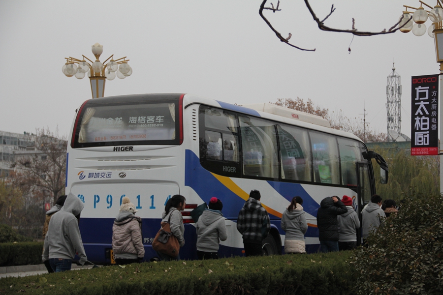 一天的行程到此结束,导游计调组的成员有序排队上车。