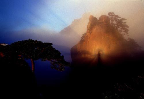 清冷的玉龙雪山顶上,终年云雾缭绕,即使是在最晴朗的天气,阳光也很难穿透云层,传说每年秋分是日月交合同辉同映的日子,只有在特别偶然的时刻,才能看到有一米长的阳光照在山顶,而被这道阳光照耀到的人就能拥有一世不变的爱情。