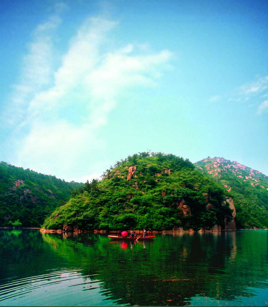 “高峡出平湖”,天绿湖有山东第一高湖之称。天上人间、水天一色,蔚为壮观、妙不可言,两边青山峻岭,一座连一座,临湖的一面就如刀削般,更为险峻。