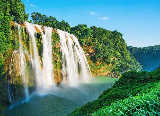前往亚洲最大瀑布——【黄果树瀑布】(电瓶车50元/人已含,不含黄果树扶梯单程30元/人,往返50元/人)抵达黄果树瀑布景区门口用午餐后进入景区游览巨大瀑崖上轰然坠入十七米深的犀牛滩中,声如巨雷,山鸣谷应,气度恢弘,气象万千,摄人心魄。作为世界上唯一可以从上、下、前、后、左、右六个方位观赏的瀑布,最特别的角度就是瀑布后边的那个水帘洞,洞窗外有块平台,您可以站在此处与瀑布来个近距离接触。如果幸运的话在这里还可以看到彩虹交织的瀑布。这里是85版《西游记》的主要取景地,除了水帘洞外,片尾曲一开始师徒四人走过的陡坡塘瀑布、位于天星桥景区的高老庄都能让您在脑海瞬间再现电视场景。游玩结束前往晴隆入住酒店休息!