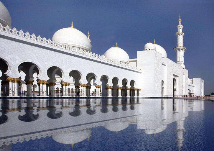 酒店自助早餐后,乘车前往中东沙漠中的花园城市阿联酋首都【阿布扎比】(车程约1.5小时)。参观阿联酋最大最豪华的清真寺【扎伊德清真寺】(入内参观1小时),【总统陵】。大清真寺内有全世界最大的手工制地毯,及耗资80万美金的施华洛世奇水晶吊灯。整个建筑群都用希腊玉石包裹着,白色典雅。