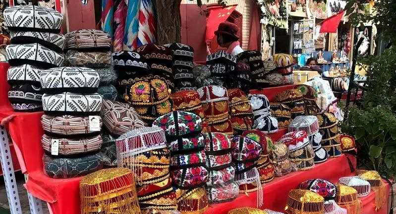 小贴士:来旅游的朋友可以让花帽店的老板为你挑选一顶花帽,戴着花帽游着古城,当一次“儿子娃娃”和“新疆古丽”。