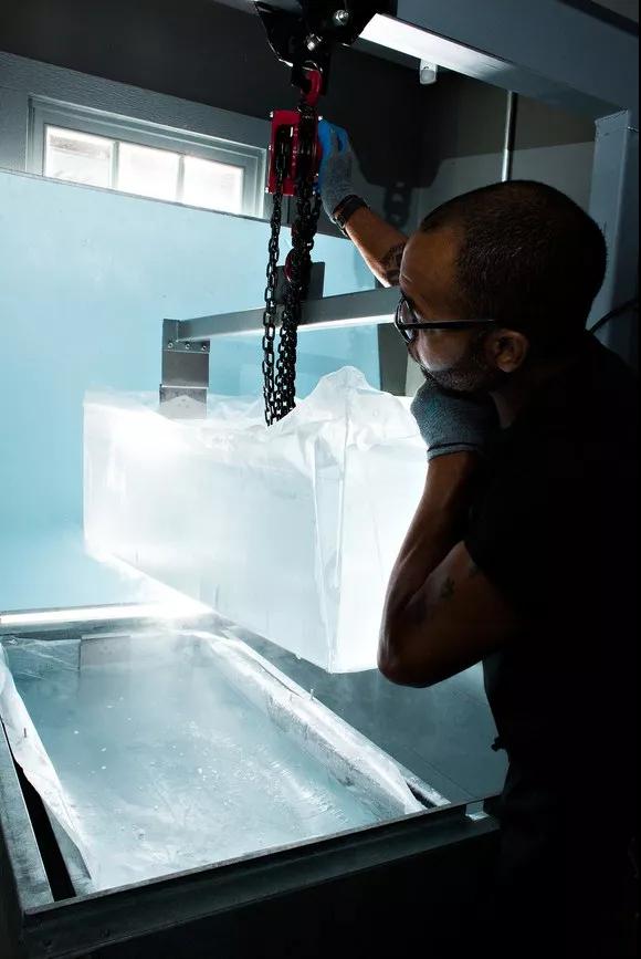 冰板制作好后,调酒师将对其进行人工切割,不断地切成小块,然后再将这些小块一一凿成需要的形状。如果说一个高人气(high-volume)酒吧只使用手工制作的冰块,那么粗略计算一下,这个酒吧每晚都需要一个调酒师专门凿冰,并且马不停蹄地凿一个半小时。London Cocktail Club bars在去年一共卖出大约14万杯老式鸡尾酒,如果使用手凿冰块,可想而知这背后所需的人力和时间多么庞大。