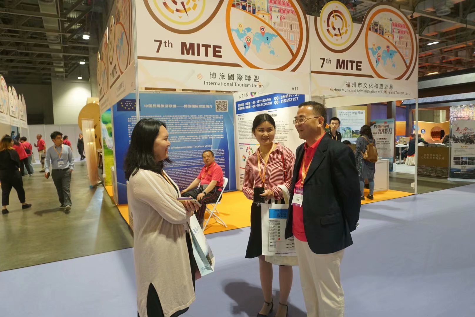 第七届澳门国际旅游(产业博览会26日在澳门威尼斯人金光会展中心揭幕。今届展会面积达220方米,标准展位数量增至835个,规模创历届之最。来自日本、泰国、约旦捷克等53个国家及地区的客商参展,博旅国际联盟百家旅行社应邀参加此次活动。 第七届澳门国际旅游(产业)博览会(简称“旅博会”)博旅国际联盟參展商面貌焕然一新,各级贵宾纷纷竖起大拇指,为博旅国际联盟点赞。