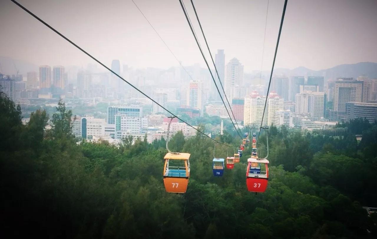 景区旅游观光缆车观赏可观厦门全景,景区内树木葱郁,称的上是厦门岛内的天然大氧吧。