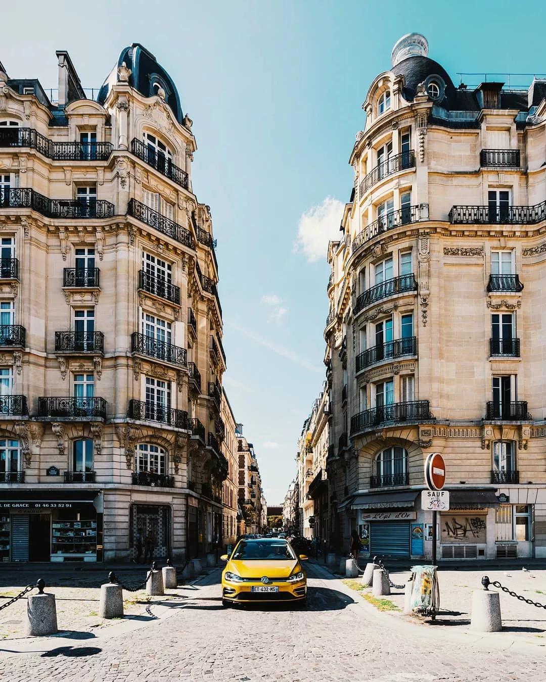 如果是两个相邻的建筑物,可以将相机的位置放在两者中间,利用道路来做引导线,会让画面有一个延伸感。