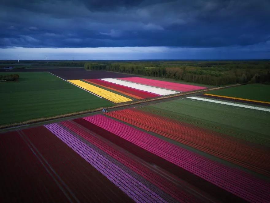 这里不仅风景优美,还拥有3500公顷荷兰最大的球根花田。一望无际的郁金香花田和高高矗立的风力发电机组成了一幅绵延100公里的美丽画卷。