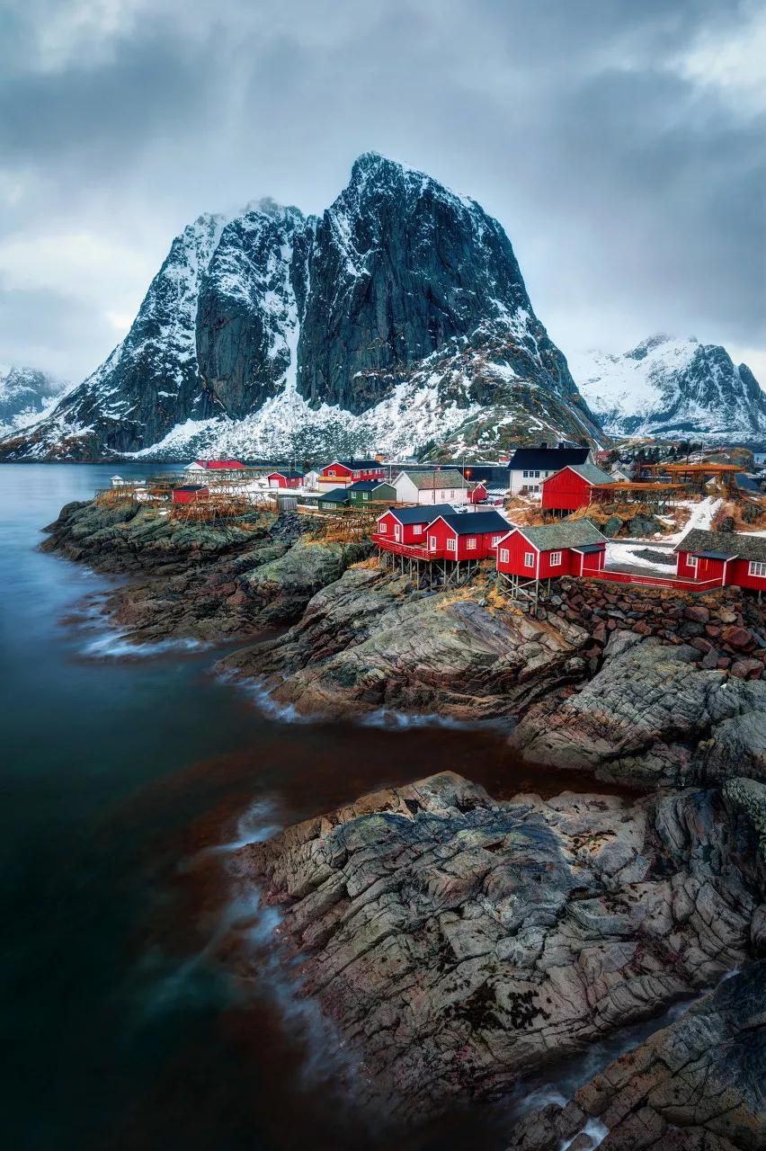 震慑人心的山峦,幽兰宁静的湖水,一切存在于童话中的建筑物、小渔船,就在这个神奇的挪威小镇。
