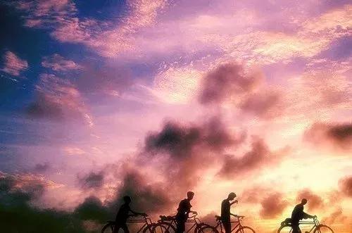 而这张剪影图片,整个布局就很简洁,一眼就知道这是在描述孩子们放学骑车回家的场景。