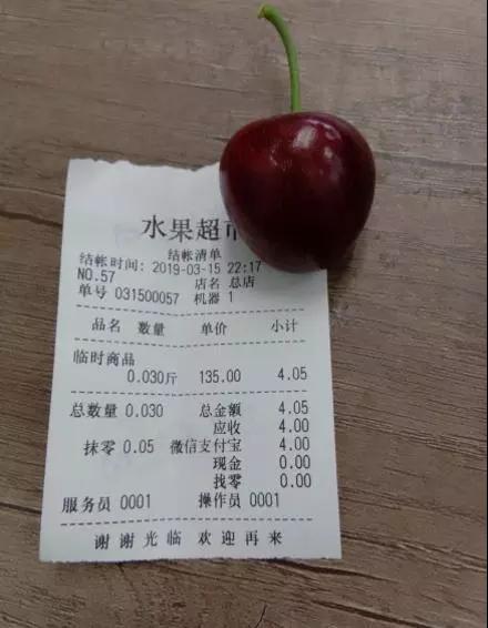 有网友拿着一颗车厘子称重结账,居然花了4元!