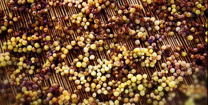 和意大利圣酒在室内慢慢脱水数月不同,这里的葡萄直接被置于阳光下晾晒12-14天,脱水后进行破碎压榨,糖分、酸度风味物质都极为浓缩。