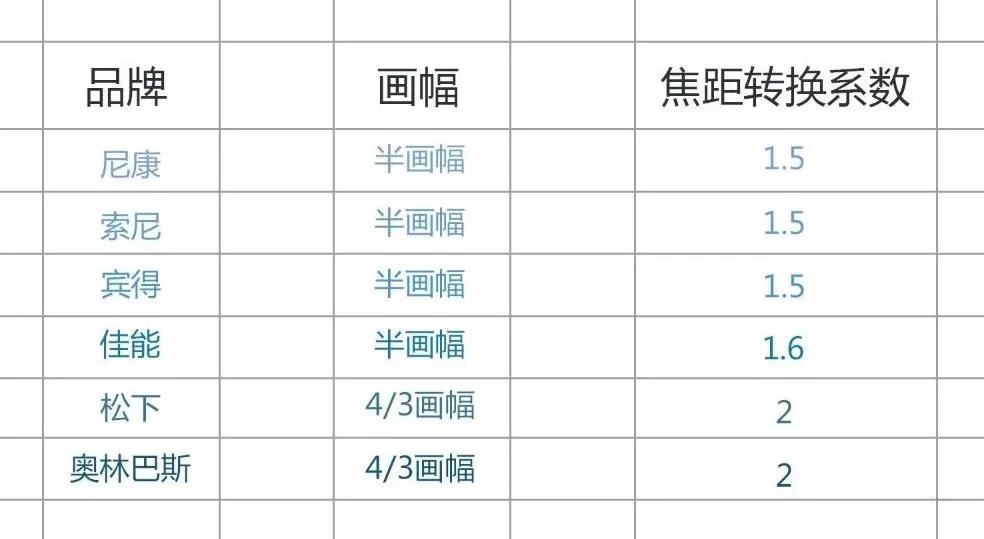 那么,如何进行有效的转换?可以看下各大相机品牌的转换系数。