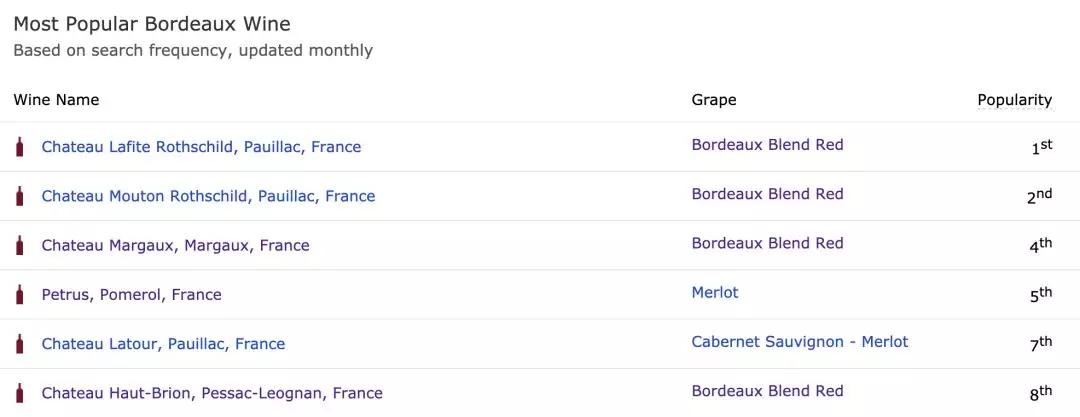 作为印证,5个一级庄的搜索量确实占据波尔多左岸的前5名。
