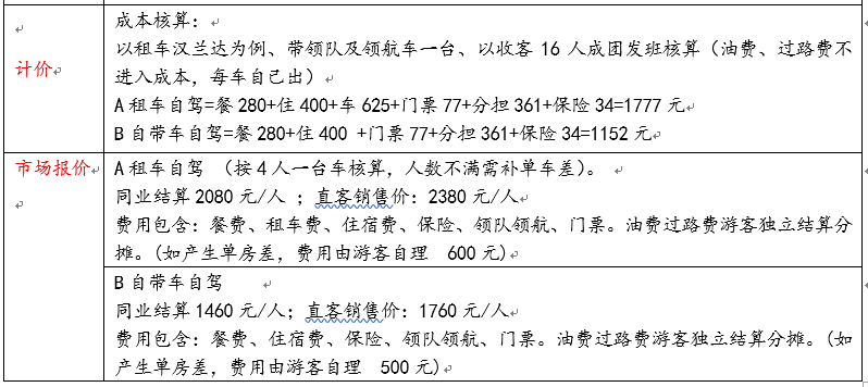 三、确定自驾游旅游产品价格