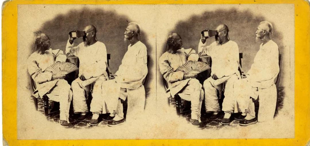 弥尔顿·米勒作品《看立体镜的中国人》,蛋白照片,9×18 厘米,1861~1863,原作由影易时代收藏