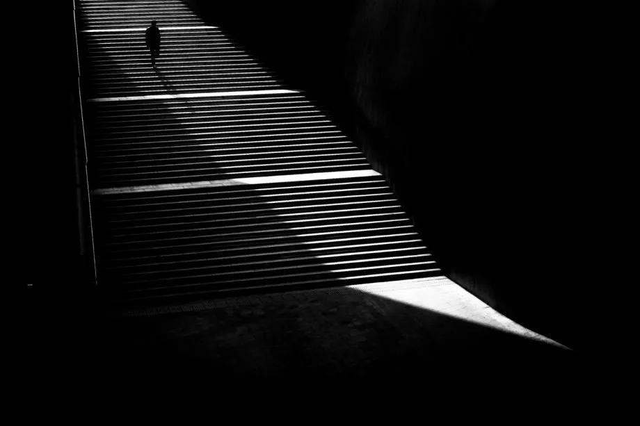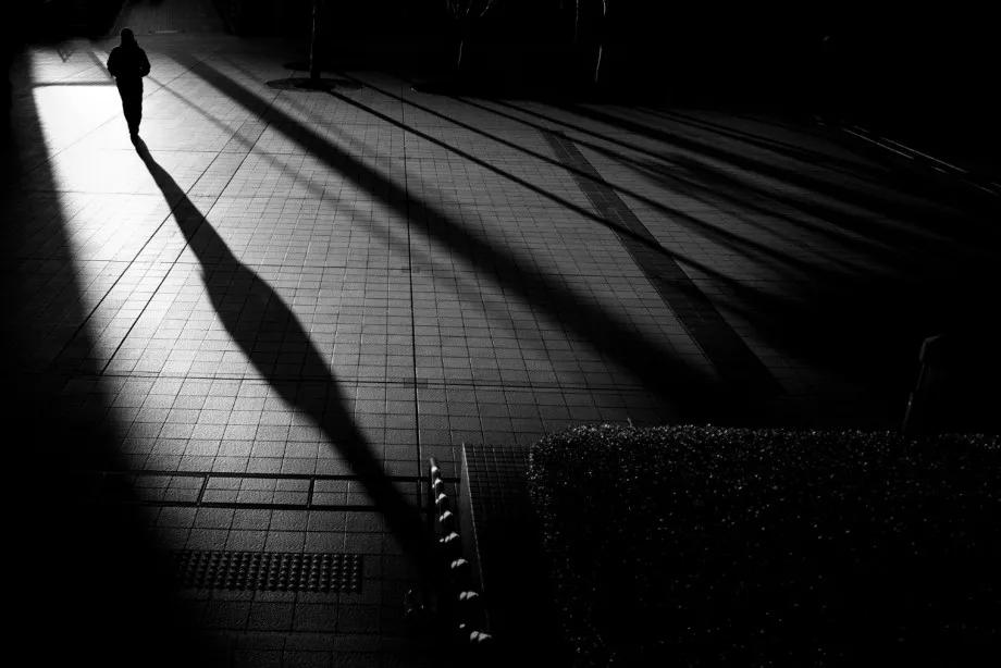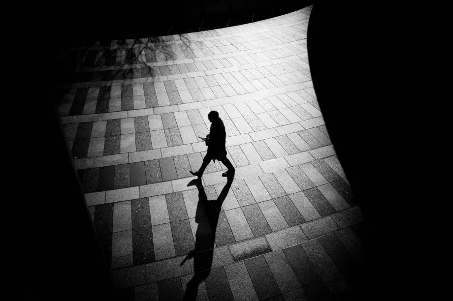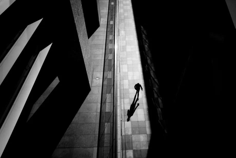 摄影图片:摄影师Junichi Hakoyama十分擅长拍摄高对比度黑白街头作品,善于利用场景中建筑物的线条,结合光影而形成明暗对比,加上充满故事性的单个人物融入其中,便成就影像拥有黑白默片的快感。