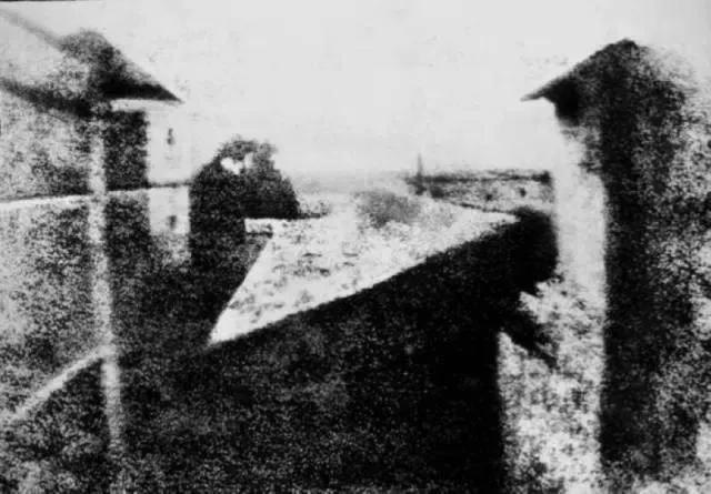 这张照片使用的是照相制版法,在一只小盒子里面放一片白蜡板,上面有感光盐涂层,附有镜头。涅普斯从他在索恩河畔沙隆的乡间住所的楼上窗口,拍摄了他的第一张照片,曝光时间约为 8 小时。