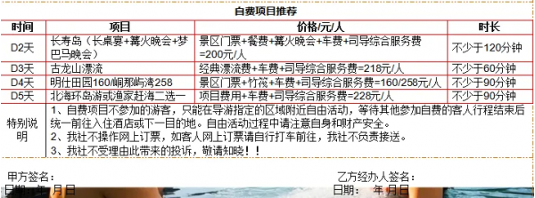 1.明仕竹筏自费价格160/人(其中120元为门票费用40元为导游司机综合服务费),峒那屿湾258/人(包含陆地游门票、游船票+导游司机综合服务费)。特别声明我社不操作网上订票,如客人网上订票请自行打车前往,我社不负责接送。