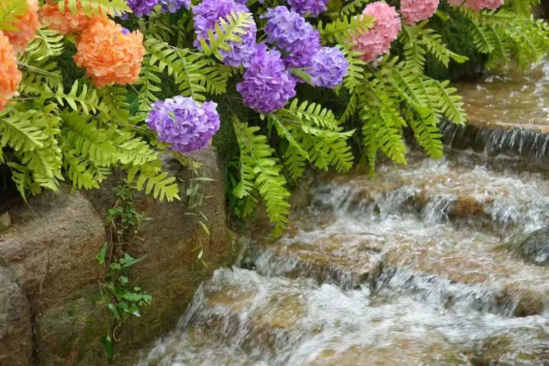 3、云瀑花溪:闯入现实版的莫奈花园,大片花海开得正盛;