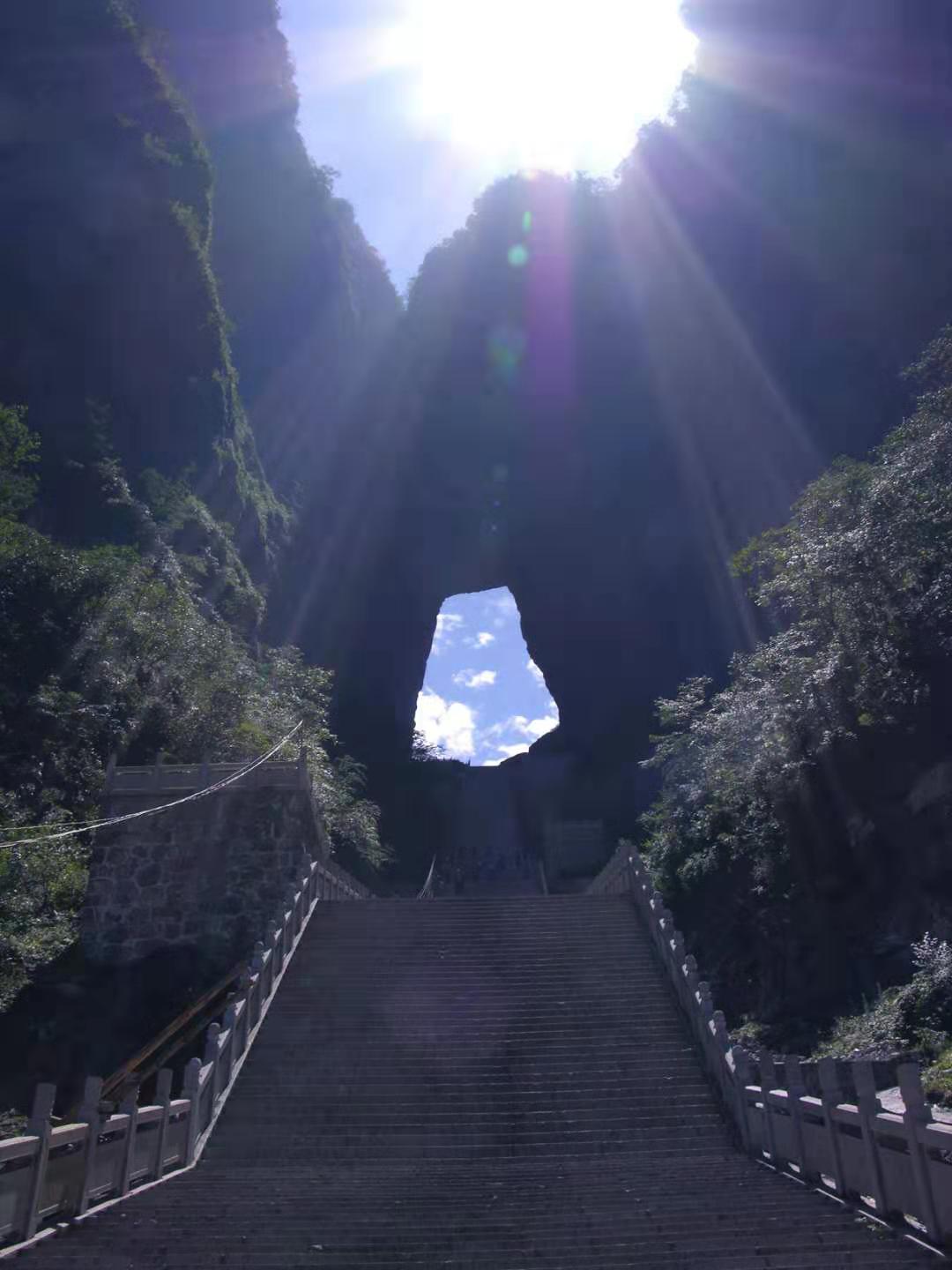 据说,天门洞开景区的有上天梯。有着九百九十九级台阶的上天梯!