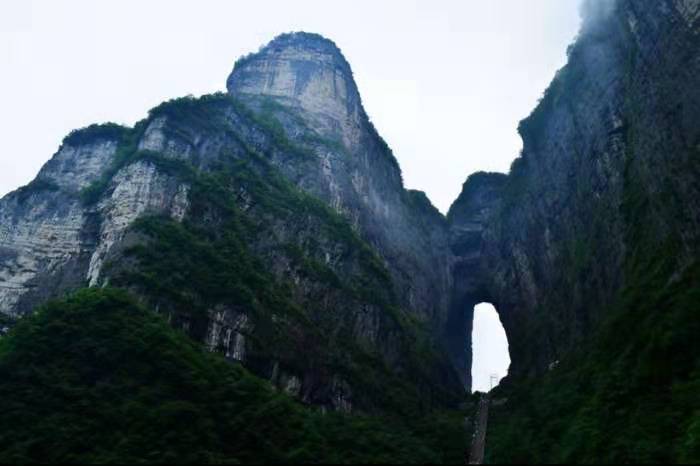 天门洞位于市城南8公里,是一座四面绝壁的台形孤山,是张家界最早载入史册的名