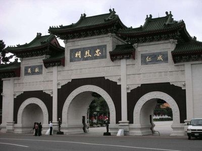 国民革命忠烈祠:建于1969年,主建筑型式仿北京故宫太和殿,位于台北市圆山,一般习称圆山忠烈祠或台北忠烈祠,原址为“台湾护国神社”。原依“国民革命忠烈祠入祀办法”设置、管理,该法于2001年12月废止,改依“忠烈祠祀办法”,入祀烈士经“国防部”造册报请“总统”明令行之。该祠奉祀殉职官兵共39万余人。圆山忠烈祠邻近圆山大饭店,祠内由三军仪队担任礼兵驻守,仪队交接仪式于每日上午九点至下午五点的整点执行,其中下午五点的仪式提早至下午四点四十分开始,操枪动作大约四十分钟,为台北市特别的观光景点。