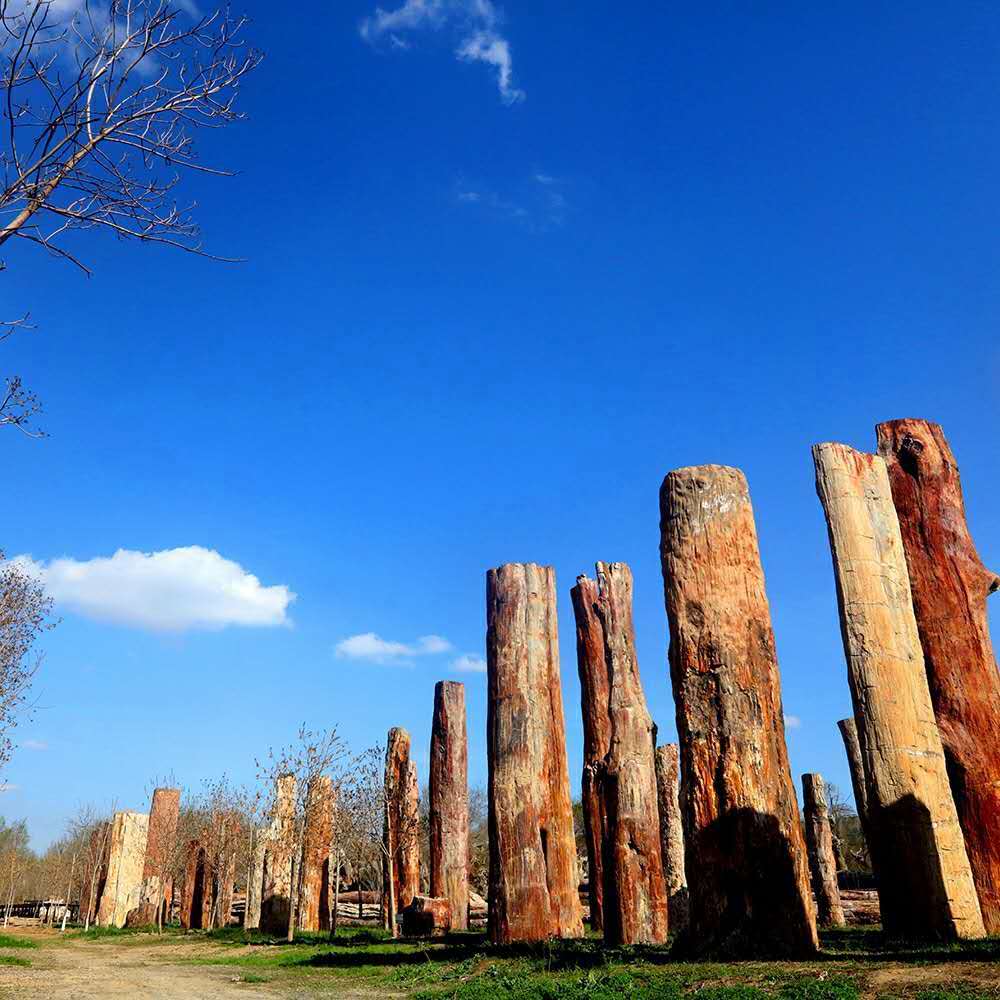 新疆古生态园内有近三百根硅化木,是世界最大的侏罗纪硅化木集中保护基地。