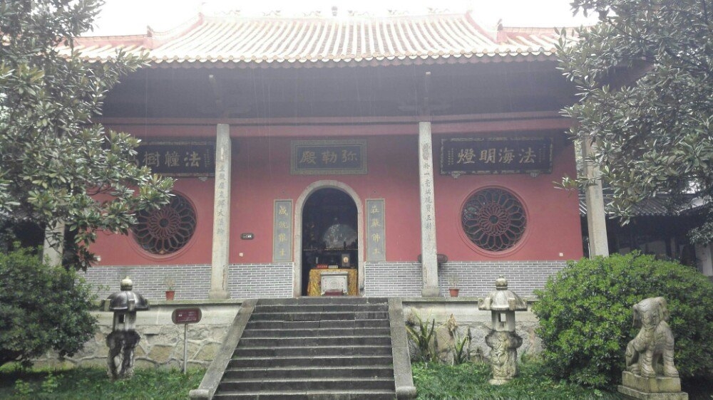 唐代大诗人杜甫曾用“寺门高开洞庭野,殿脚插入赤沙湖”的诗句称颂殿宇宏大。大雄宝殿等主要建筑,于1944年被炸毁,仅存山门和观音阁,现已修整一新.山门上有“古麓山寺” 的横额,两旁为“汉魏最初名胜,湖湘第一道场"对联,门外古枫参天,浓荫覆盖,门内园圃百花争艳。