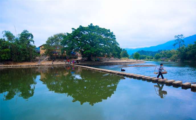 百年老榕、神奇土楼,还有那灵山碧水,无不给人以超然的感觉。南靖县长教风景区拥有世界文化遗产和贵楼、怀远楼、省内最高最大最为集中的千年古榕树群、一条百年老街、千年古道。版权所有山东聊城聊之旅国际旅行社有限公司,转载必究!溪岸边,由13棵百年、千年老榕组成的榕树群蔚为壮观,其中一棵老榕树树冠覆盖面积1933平方米,树丫长达30多米,树干底端要10多个大人才能合抱,是一棵目前我省已发现的最大的榕树。榕树下一条被踩磨得非常光滑的鹅卵石古道伸向远方,据考证是长汀府(龙岩市)通往漳州府(漳州市)的必经之路。古道旁,有一排两层老式砖木结构房屋,那就是长教已有数百年历史的老街市。至今,这些老商铺大多还保留着木板代墙的特点。村中最引人注目的是山脚下、溪岸旁、田野上星罗棋布的一座座土楼。这些从元朝中期就开始建造的土楼,目前保存完好就有53座。这些土楼姿态万千,除了有建在沼泽地上堪称“天下第一奇”的和贵楼,及工艺最精美、保护最完好的双环圆土楼——怀远楼外,还有吊脚楼、竹竿楼、府第式土楼等,土楼风景别具一格。云水谣古镇也是漳州著名的侨乡。据《长教简氏族谱》记