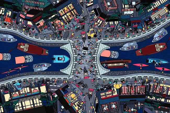 “30BAR”的墙面也足够吸人眼球,黄、粉、红、黑四条彩绘鲤鱼,纵横穿梭在墙上。不远处,一家名为“Thirty one Coffee”的后海酒吧,黑色墙体上印满英文字母,穿着玫红T恤的“waiter”从店里走出,昭示着现代的细节。后海酒吧的另种意义,可能还在于文化的融合与接纳。