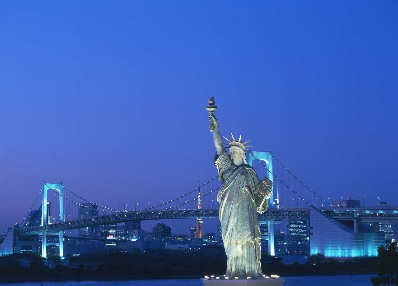 现在设置在台场的自由女神像,是原物归还后,在回应一片惋惜声中制作的复制品,虽然如此,现在她已变成台场的标志。以彩虹大桥为背景,与女神一起合影留念是不可缺少的活动项目了。