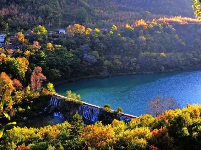 官鹅沟水美。13个大小不等、形态各异的湖泊,尤如一串绿色的珍珠镶嵌在沟内,湖水清澈透底,随湖底地貌高低呈不同颜色,那些倒映在湖中的古树象一条条巨龙卧在湖底。蓝天白云和青山古树,映入湖中,使天地浑然一体,没有界限。