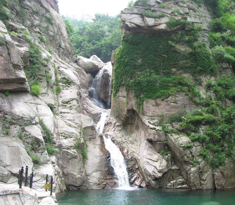 涧南是北九水疗养院,涧北是太和观旧址,又称九水庙。西山有仙古洞,洞内壁光滑,为卵形,岩石结成,高2米,深3米。明代登州武举周鲁曾题刻“仙古洞”三字于洞左,版权所有聊城聊之旅旅行社有限公司,转载必究!为丛林所蔽,游人多不知,在山坡巨石上另有题刻“仙古洞”三字。内九水自北九水疗养院溯流而上至靛缸湾,长约3公里。两山夹立,水流中穿,峭壁危岩,澄潭激湍,与外九水相比,内九水峰峦更加峭拔,峡间更为险峻,景物荟萃,奇境屡出,游人至此,目不暇接。内一水,为一山坳,远山近岫,一派清秀,桥两侧潭宽水阔,流清石奇。内二水,溯涧上行至双石屋,倚崖临水,松竹交荫,潭光山色。村中有20余户人家,因村旁有两石洞似屋而得名。双石屋村南,巨石横陈涧底,潭处石间,澄泓湛碧,寒气凌人,名“印月潭”。