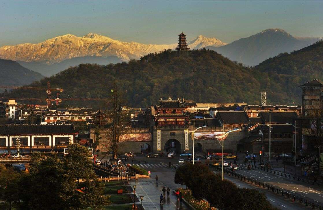 古城从2009年底开始实施整体打造,界面建筑全部按照川西明清风格打造,同时引水入城,蜿蜒回旋,置身其中,仿佛实现了历史穿越,现代的烦恼和喧嚣也同时驱散一空。夜间,古城和玉垒阁及山间亭阁共同亮灯,为灾后重建的美丽古城再添一景。