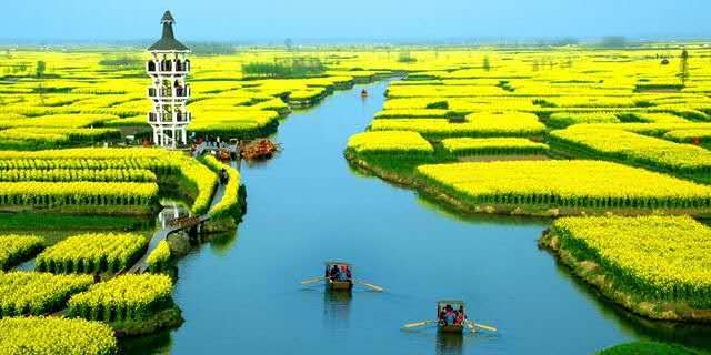 兴化油菜花景区,位于兴化市缸顾乡东旺村和李中镇黑高村东侧,以千岛样式形成的垛田景观享誉全国,有“千岛油菜花”之称。千百垛田漂浮于水中,云蒸霞蔚,煞是壮观。版权所有山东聊城聊之旅国际旅行社有限公司,转载必究!垛田是兴化市一种独特的农田地貌,每当枯水季节,百姓们就将低洼地区水中的泥土挖上来,堆积到较高的地方,形成了一块块水中小岛式的垛田。置身其中,如同走进古人摆设的水中“龙门阵”。
