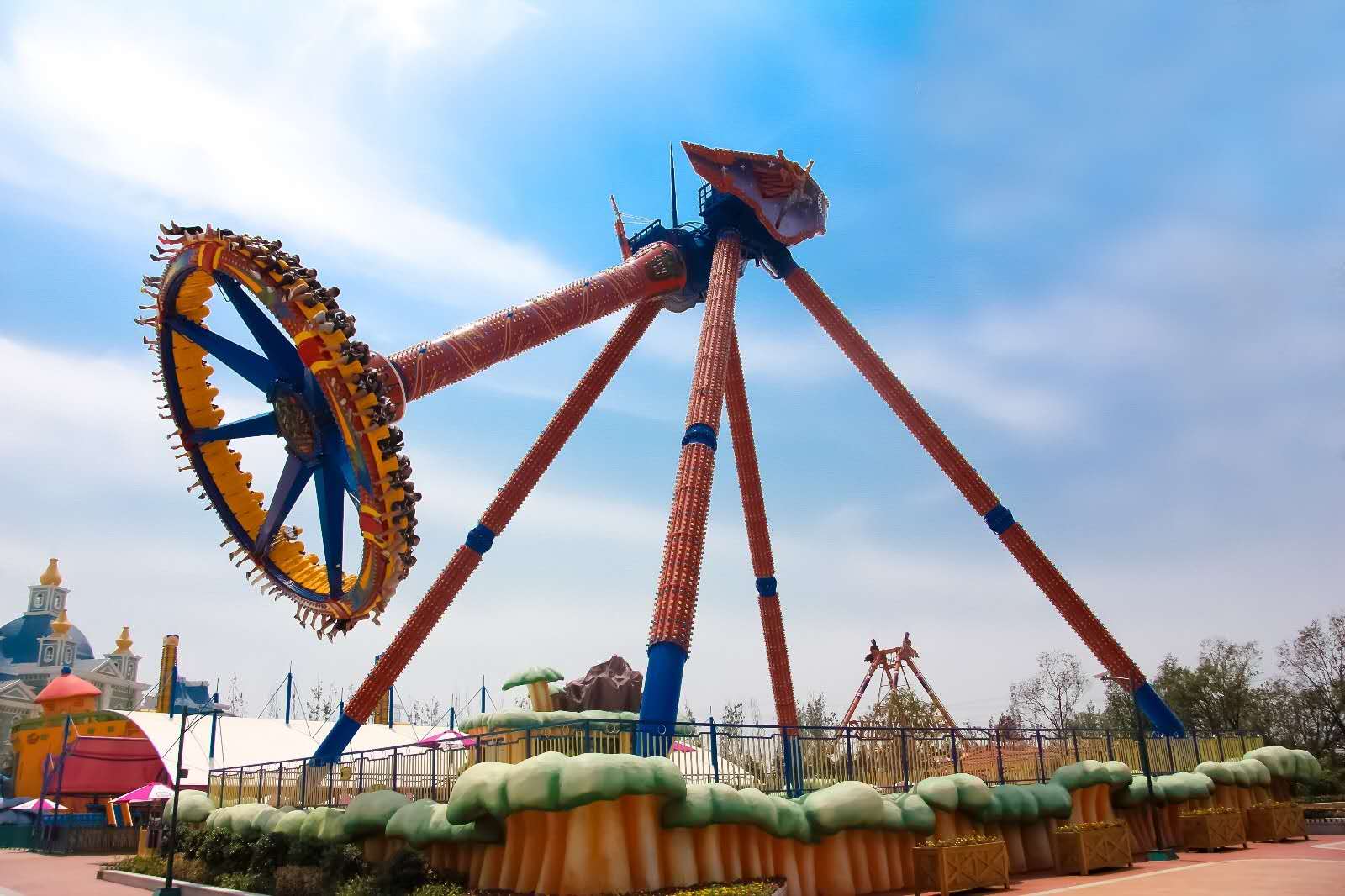 狭长的轨道扭曲360°后形成圆环、优雅神秘,暴风一般的速度转体720°后半空骤停、急速倒退,创造出疯狂刺激的风中旅程,圆环过山车——暴风眼加入多种高空运动体验元素,让忐忑和刺激的感觉交织冲击您的极限!