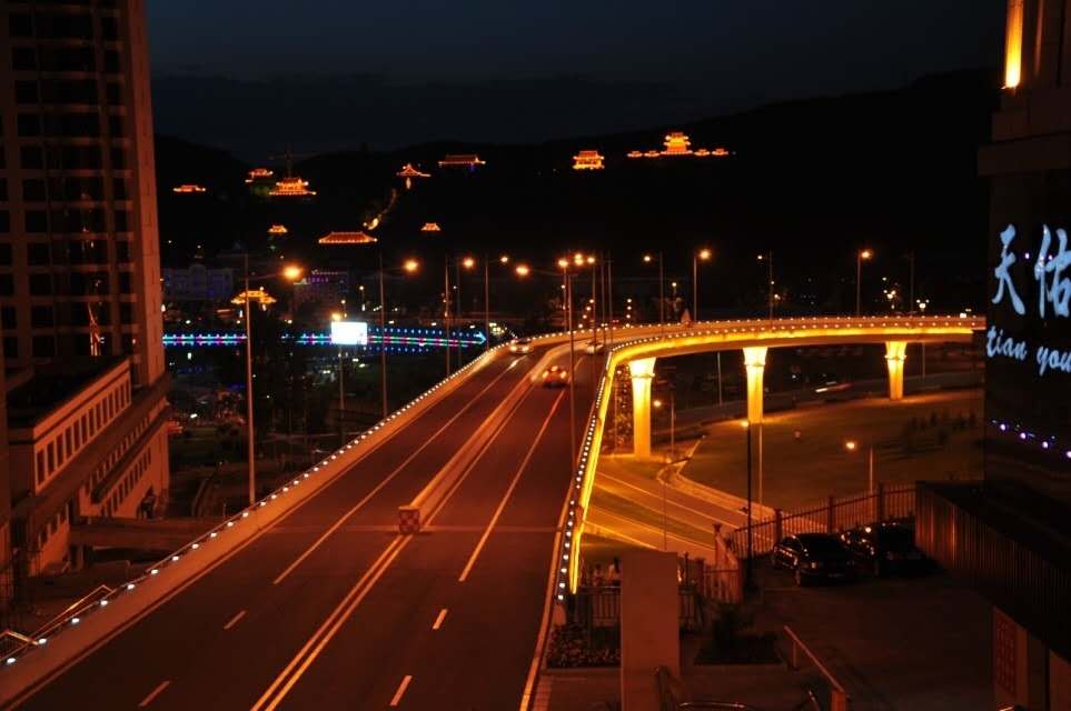 绥芬河新华街斜拉大桥 由中铁十八局集团二公司承建的总重量14000吨的斜拉桥——黑龙江省绥芬河市新华街立交桥,日前成功的水平转过70.2度角,经检测,该桥平转后的轴线误差仅为3毫米,完全满足设计要求。这标志着独塔、单索面、单点、平铰、水平转体施工的中国最大跨度斜拉桥转体成功。大桥建成后,将老城区和西城区紧密联系在了一起,确保市区交通顺畅,同时还促进了城市的平衡迅猛发展,使中心区人口向西城区疏散,缓解中心区人口密度和交通压力。