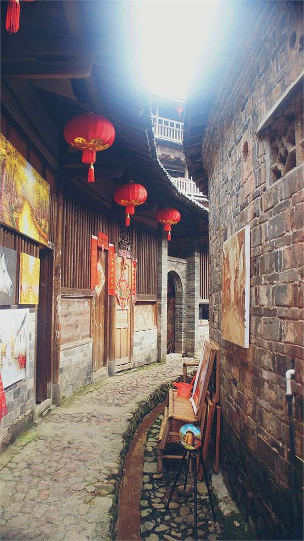 第四环为祖堂,单层,比第三层稍低,使全楼形成外高内低、逐环递减、错落有致的格局。占地33.83平方米。后向的厅堂与正面两侧的孤形回廊围合成单层圆形屋,中为天井。祖堂歇山顶,雕粱画栋,正面对着大楼门,门面两侧饰绘画和精美的砖雕;厅堂东西两侧各设一小门与全楼东西走向的通道及外环东西面的两个边门相连。版权所有山东聊城聊之旅国际旅行社有限公司,转载必究!厅堂后向上方和前向屋檐下悬挂清代至20世纪80年代一些名人赠送给该楼的题匾;两侧两对石柱上镌刻警示子孙后代的楹联:“一本所生,亲疏无多,何必太分你我?共楼居住,出入相见,最宜重法人伦。”“天地人三盘,奥妙无穷;助人间为乐,造福万年。”由此可以见证楼主世代立家、做人的理念和曾经有过的辉煌。每逢重大节日,祖堂摆设的巨型围屏,即16世祖江馨轩71寿辰时的祝寿屏风,由12块组成,高2.72米,中间8块每块宽0.46米,两边每块宽0.47米,精雕细刻,金碧辉煌,古事人物栩栩如生,其中最引人注目的是千古流传的“二十四孝图”。屏中正面下半部分的“二十四孝图”取材于古代孝子的故事,工笔细腻、形象逼真、图文并茂、寓意深刻,充分体现了土楼客家人敬祖睦宗、孝顺父母的传统美德。围屏正面上半部分雕刻唐代著名人物郭子仪拜寿图,背面雕刻清代朝廷六部-及楼主亲戚的祝寿词,内容包括颂词与对后人的警语。此外,该围屏还雕刻许多珍禽花鸟。对楼主来说,该围屏在重大节庆时反复向族人展示,既是让大家分享艺术珍品,更是对全体族人进行传统美德的再教育。该楼环与环之间以鹅卵石砌天井相隔,以石砌廊道或小道相连。