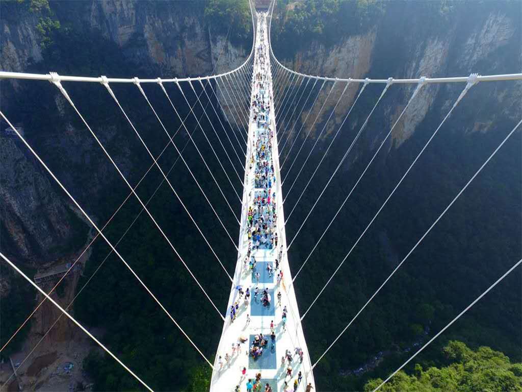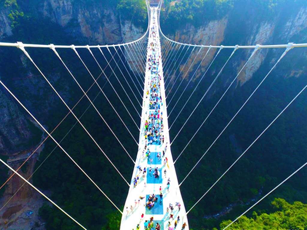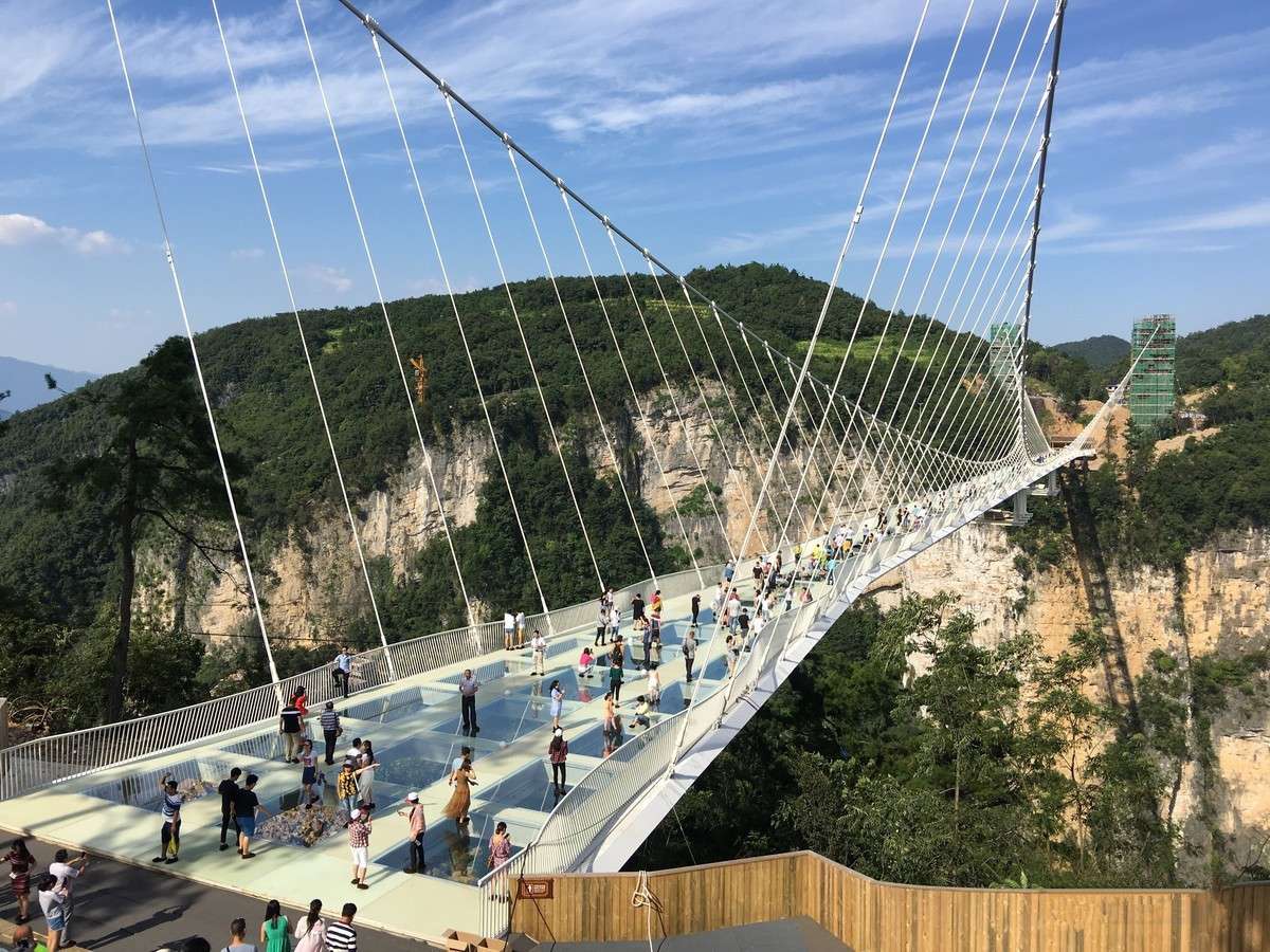 云天渡全长536米、宽6米,为一座大型山谷悬索桥,因其创下多项玻璃桥的世界记录而闻名中外。