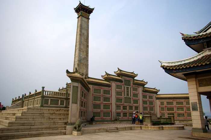 鳌园,坐落在集美东南隅,总面积达8990平方米。鳌园原为一座小岛,形似海龟、故为“鳌园”。嘉庚先生花10年时间、耗资65万元,亲自设计、督建而成的。园中建筑和雕刻,均体现他寓教于游、寓教于乐的思想,包含中外古今、天文地理、科技文教、书法绘画、动物植物、工农业生产等诸多方面,无所不有,无所不包,博大精深,是个博物大观。鳌园由门廊、集美解放纪念碑和陈嘉庚先生的陵墓三个部分组成。门廊的设计精巧洒脱,两厢墙上镂刻着连环组雕。园中央矗立着“集美解放纪念碑”,正面是毛泽东主席的题词,背面是陈嘉庚先生亲自撰写的碑文。整个纪念碑高28.6米,通体以花岗岩建成,基座两层,台阶下层八级,上层三级,象征着八年抗战及三年解放战争,四周绕以青石雕栏。